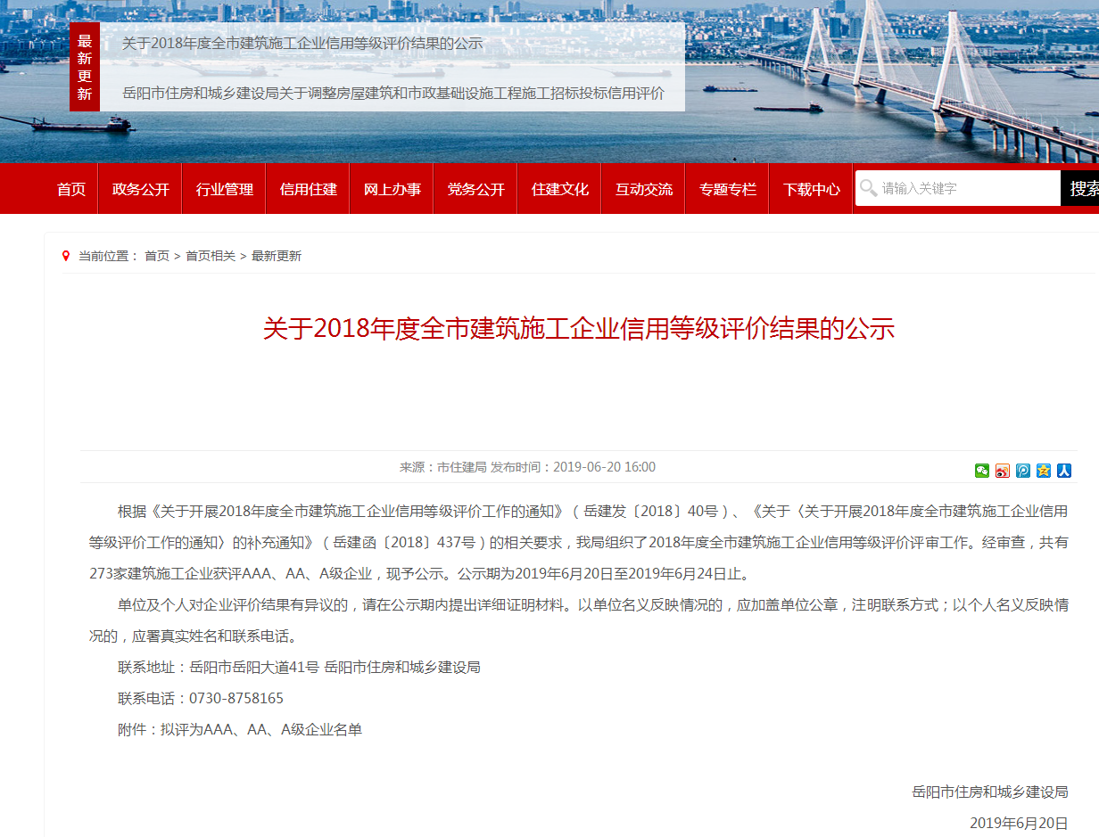 公司榮獲2018年度全市建筑施工企業(yè)信用等級(jí)評(píng)價(jià)AAA級(jí)企業(yè)